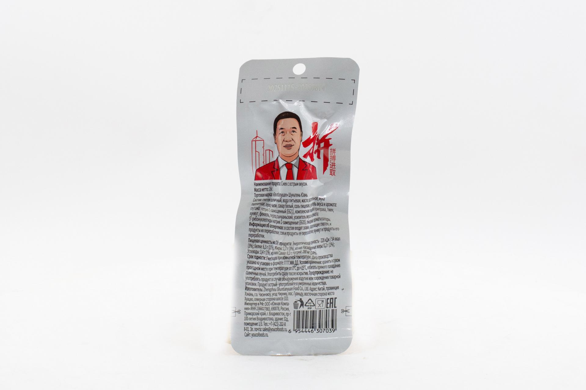 Снек Шуньтень Юань с острым вкусом (Китай) 26г0,00 руб. за штуку (в упак. 20 шт.) |